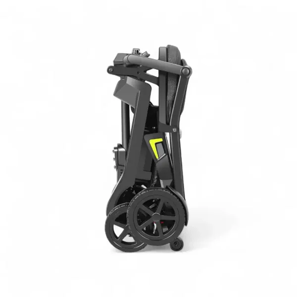 De Traveler 500 is gemaakt van sterk aluminium, waardoor hij duurzaam én licht blijft. Het slimme vouwmechanisme maakt het mogelijk om de scootmobiel in slechts één beweging in te klappen.